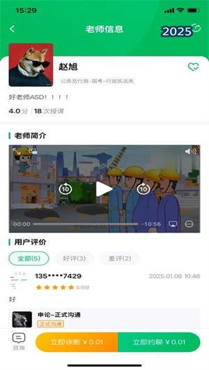 吾有師 App 匯聚了海量名師專家,涵蓋公務(wù)員、事業(yè)編、教師編、CPA、國(guó)家司法、建筑師等多個(gè)領(lǐng)域的頂尖導(dǎo)師。通過導(dǎo)師認(rèn)證和用戶評(píng)價(jià),平臺(tái)確保每位導(dǎo)師的專業(yè)性和教學(xué)質(zhì)量。此外,導(dǎo)師資源還支持在線預(yù)約和實(shí)時(shí)互動(dòng),方便用戶隨時(shí)獲取專業(yè)支持。