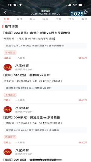 紅球吧App支持賽事觀看功能,用戶可以通過平臺觀看足籃球賽事的動畫直播和精彩回放。例如,用戶可以選擇觀看實時動畫直播,感受比賽現場的緊張氛圍,或通過精彩回放功能回顧比賽中的關鍵瞬間。此外,平臺還支持多畫質選擇功能,用戶可以根據網絡狀況選擇不同的畫質,確保觀看流暢。