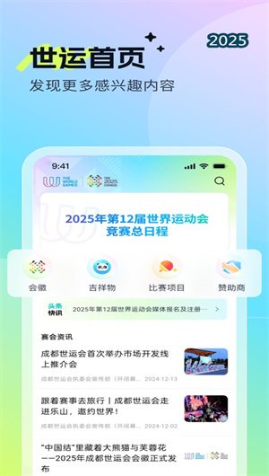世運通App(英文名為“Chengdu2025”)是成都世運會的官方應用軟件,旨在為運動員、裁判員、技術官員、觀眾和媒體記者等用戶群體提供全方位的便捷服務。通過世運通App,用戶可以獲取賽會場館、賽事項目、會徽、吉祥物等詳細信息,并享受氣象服務、交通服務、城市介紹、文化活動、賽事資訊、公告、身份認證、語言切換和反饋功能等多樣化服務。世運通App致力于為用戶打造高效、便捷的世運會體驗,成為連接用戶與世運會的重要橋梁。