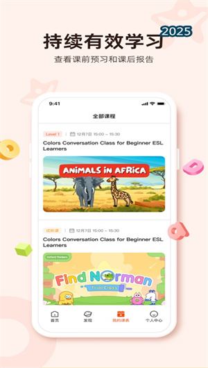 思達伴學App依托牛津經典教材,打造了一套系統且統一的課程體系,涵蓋從基礎到高級的多個學習階段。例如,初級課程專注于日常口語表達,而高級課程則涉及商務溝通和學術寫作。課程內容經過精心設計,確保學生能夠循序漸進地掌握英語技能。此外,平臺還提供課程復習功能,學生可以隨時回顧已學內容,鞏固知識。