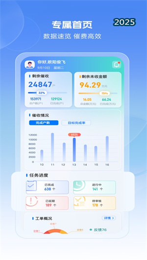 2. 多維度績效評估:催費云APP采用多維度績效評估體系,用戶的績效評分不僅包括任務(wù)完成情況,還包括催費成功率、客戶滿意度等指標(biāo)。平臺會根據(jù)用戶的績效評分自動計算績效獎金,確保評估結(jié)果的公平性和透明性。通過多維度績效評估功能,用戶可以全面了解自己的工作表現(xiàn),激勵自己不斷提升工作質(zhì)量。