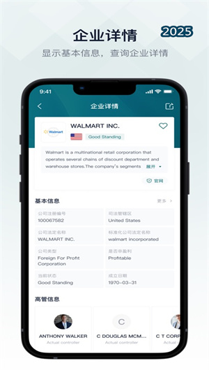 海外查App提供全面的高管信息檢索功能,幫助用戶了解企業核心管理團隊的背景和經歷。無論是CEO、CFO,還是董事會成員,用戶都可以通過海外查App查詢到高管的職業履歷、教育背景和關聯企業信息。通過高管信息檢索功能,用戶可以深入分析企業管理層的實力和穩定性,為投資和合作決策提供參考。