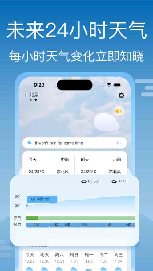 3、立即了解未來24小時的天氣,每小時的天氣變化。
