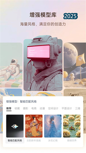 星流構(gòu)建了移動端首個十萬+規(guī)模的風(fēng)格模型庫,每日更新200+個經(jīng)過專業(yè)審美篩選的風(fēng)格模型。用戶可通過"風(fēng)格融合"功能自由疊加2-3種不同風(fēng)格,利用"種子碰撞"技術(shù)創(chuàng)造獨一無二的藝術(shù)效果。針對商業(yè)設(shè)計需求,平臺特別優(yōu)化了電商海報、3D渲染、空間設(shè)計等垂直領(lǐng)域的風(fēng)格模型,使非專業(yè)用戶也能一鍵生成符合行業(yè)標(biāo)準(zhǔn)的商業(yè)用圖。