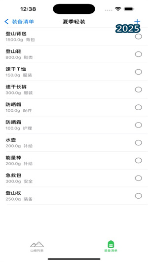 裝備推薦系統根據登山類型、季節和時長自動生成基礎裝備列表。重量計算器精確統計背包總重,遺漏檢查提醒易忘物品,裝備準備充分度提升80%,避免關鍵物品遺漏。
