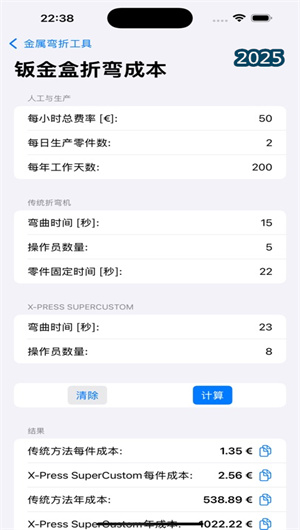 2. 專業力學校算:金屬彎曲工具APP的V型彎曲力計算器考慮模具開口、材料抗拉強度等12項參數,精確輸出所需噸位。擦拭彎曲力模塊專門針對特殊成型工藝,深拉力計算器則適用于汽車面板等復雜部件的工藝設計,所有計算均遵循金屬塑性變形基本原理,確保設備設置安全可靠。