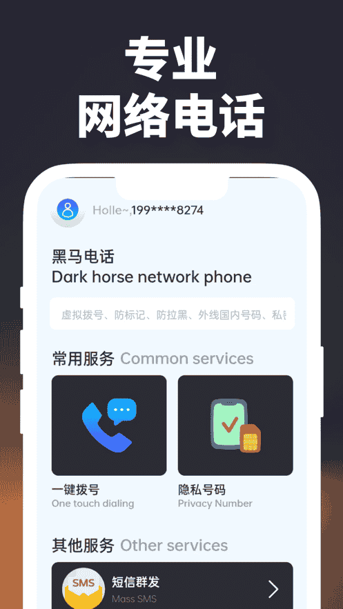 黑馬網絡電話App,一款致力于加強網絡電話服務的蘋果電話軟件,是一款高安全性、防騷擾、保護隱私的網絡電話軟件,全球用戶使用量已經超過5億人。