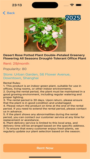 平臺(tái)提供靈活的租賃套餐,支持按月、按季、按年等多種租賃周期。創(chuàng)新的"無憂更換"服務(wù)允許用戶隨時(shí)調(diào)整植物品種,滿足不同階段的審美需求。所有租賃訂單包含專業(yè)的配送安裝和定期養(yǎng)護(hù)服務(wù),用戶可通過APP預(yù)約植物醫(yī)生上門服務(wù),確保綠植始終保持最佳狀態(tài)。