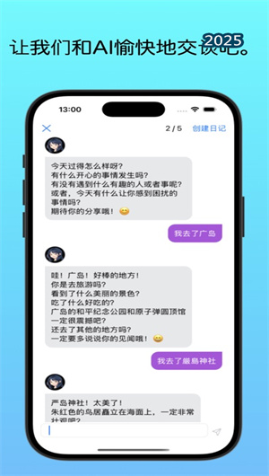 1. 智能對話記錄:AI日記本APP的聊天界面支持語音輸入和文字對話兩種模式,AI助手會(huì)通過自然提問引導(dǎo)用戶回顧一天經(jīng)歷。情感識(shí)別引擎實(shí)時(shí)分析對話內(nèi)容中的情緒傾向,自動(dòng)標(biāo)記開心、感動(dòng)等重要時(shí)刻。特別優(yōu)化的"記憶錨點(diǎn)"功能,能識(shí)別并突出顯示對話中的關(guān)鍵事件,形成日記的骨干內(nèi)容。