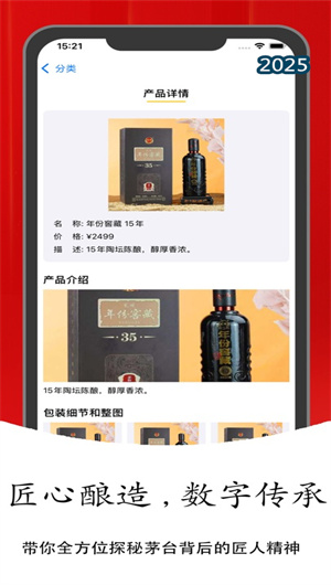 平臺構建了茅臺全系數據庫,涵蓋飛天、生肖等12大系列300+款產品。多維篩選系統可按年份、度數、規格等條件精準查找目標酒款。產品詳情頁包含生產工藝、包裝細節等深度內容,配合3D酒瓶展示技術,讓用戶全方位了解每款茅臺的特點與價值。