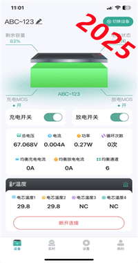 實時采集電壓(±1mV精度)、溫度(0.1℃分辨率)、內阻(0.5mΩ誤差)等18維參數,通過AI算法生成健康評分(0-100分)。當檢測到電芯不均衡(壓差>50mV)時,自動觸發主動均衡(速度0.5秒/次),有效抑制電池衰減,組包壽命提升30%。