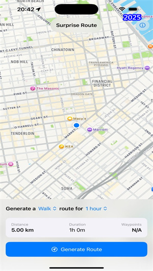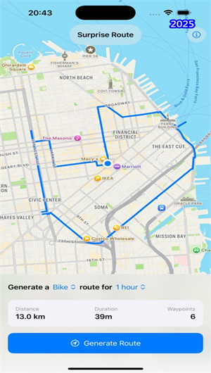 驚喜路線App(Surprise Route Generator)是一款基于智能算法的個性化路線推薦工具,旨在通過動態(tài)路徑規(guī)劃、興趣點匹配和實時數(shù)據(jù)更新,為用戶提供充滿未知與驚喜的探索體驗。該應用結(jié)合LBS定位技術(shù)、用戶行為分析和AI興趣建模,確保每次生成的路線都符合用戶的偏好,同時融入隨機化探索元素,打破常規(guī)通勤或運動的單調(diào)性。無論是步行、騎行還是駕車,驚喜路線App都能通過多模態(tài)交通整合、POI智能篩選和情境化路線優(yōu)化,讓每一次出行變成一場小型冒險。
