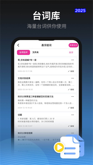 主播易提詞App是一款專為直播行業打造的智能提詞解決方案,通過多平臺懸浮窗技術和AI語音識別算法,幫助娛樂主播實現流暢自然的直播互動。該應用采用跨平臺適配架構,完美支持抖音、快手、小紅書等主流直播平臺,提供全屏提詞板和智能跟讀系統兩大核心功能。主播易提詞App創新性地整合了語音轉文案引擎、視頻話術提取和多設備云端同步等先進技術,將傳統提詞器升級為智能直播助手。據統計,使用該App的主播平均互動時長提升42%,直播流暢度評分提高35%,成為眾多專業主播的必備工具。