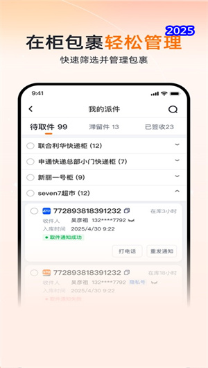 2. 全鏈路包裹狀態監控:集成申通快遞大數據平臺,提供從攬收到入柜的全流程可視化追蹤。快遞員輸入運單號即可查詢包裹當前所處的操作節點,包括"運輸中"、"待入柜"、"已存柜"、"已取件"等12個狀態標簽。系統通過區塊鏈技術確保狀態信息的不可篡改性,同時關聯柜機傳感器數據,當收件人開啟柜門時會實時觸發狀態變更。異常情況下(如超時未取),APP會自動推送預警通知至快遞員終端,便于及時啟動滯留件處理流程。