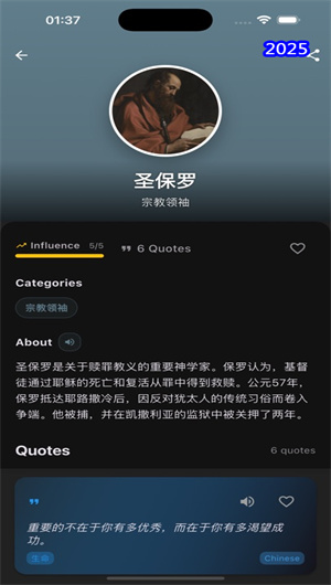 2. 人物檔案深度解析:每個(gè)思想家的專(zhuān)屬頁(yè)面包含生平年表、思想流派、代表著作等結(jié)構(gòu)化數(shù)據(jù),以及與其他名人的關(guān)聯(lián)網(wǎng)絡(luò)圖。特別開(kāi)發(fā)的"智慧脈絡(luò)"功能可可視化展示某位哲學(xué)家核心觀點(diǎn)的演變過(guò)程,如亞里士多德從形而上學(xué)到倫理學(xué)的思想發(fā)展軌跡。系統(tǒng)會(huì)智能標(biāo)注名言間的承繼關(guān)系,比如顯示叔本華某句話對(duì)尼采特定觀點(diǎn)的影響程度,幫助用戶建立系統(tǒng)性的認(rèn)知框架。