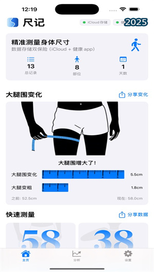 系統內置8大預設測量部位模板,涵蓋腰圍、臀圍等關鍵指標,同時支持自定義測量部位滿足個性化需求。所有數據采用時間戳標記并存儲為結構化數據庫,支持CSV格式導出進行專業分析。與HealthKit的深度集成實現健康數據互通,而iCloud自動同步則確保多設備數據一致性。