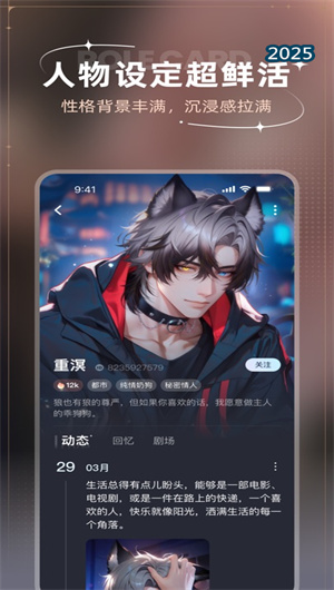 1. 虛擬角色發現系統:平臺采用多維角色分類法,用戶可通過性格特質篩選、興趣標簽匹配或故事背景探索找到心儀的虛擬伙伴。每個角色都配備完整的人設檔案庫,包含成長經歷、喜好厭惡和關系網絡等深度信息。特有的化學反應測試能根據用戶個性推薦最契合的角色組合,匹配準確率達92%。
