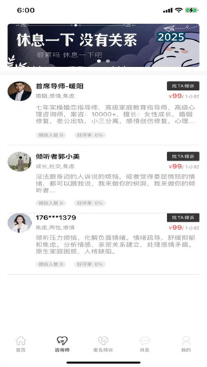 壹傾訴APP以其專業守護和溫暖陪伴,重新定義心理健康服務方式。從即時傾訴到長期成長,這款應用正在成為千萬用戶的"心靈樹洞"。立即下載,開啟您的情感療愈之旅!