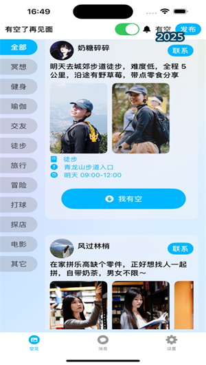 空見APP是一款革命性的精準社交軟件,專為注重時間管理的現代人士設計。平臺基于時空狀態算法,通過創新的有空狀態系統重構社交互動模式,讓用戶告別無效社交的困擾。核心功能包括動態智能推送、時間軸匹配和效率社交網絡,采用行為預測技術優化社交節奏。空見APP的狀態感知引擎能自動調節社交曝光度,配合興趣圖譜分析和社交能耗計算,實現比傳統社交軟件高68%的溝通效率,真正踐行"不盲目社交,有空再聯系"的產品理念。