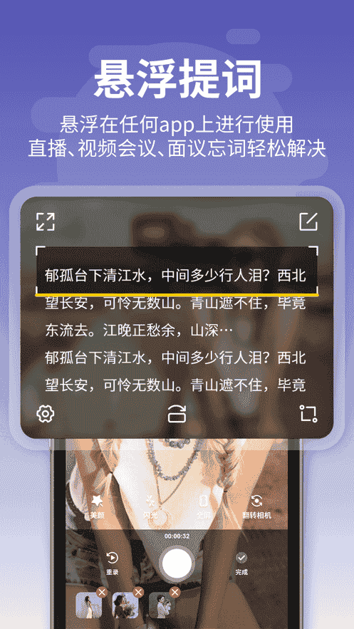 提詞器APP,愛提詞AI浮動提詞器&問題詞器,只需將文稿輸入APP即可完成文本內容的自動滾動提詞和視頻拍攝,同時提詞,完全滿足要求。