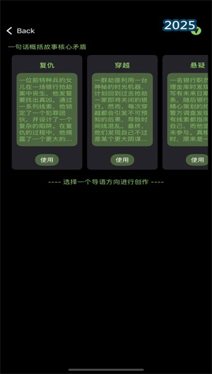 1. AI創(chuàng)意生成系統(tǒng)內(nèi)置海量劇情模板,用戶通過(guò)核心概念輸入即可觸發(fā)智能劇情構(gòu)建算法。系統(tǒng)支持多類型題材適配,能夠根據(jù)愛(ài)情、懸疑、科幻等不同題材特征,自動(dòng)生成符合類型規(guī)律的情節(jié)發(fā)展脈絡(luò)和故事高潮設(shè)計(jì),使創(chuàng)作起步效率提升70%,有效解決創(chuàng)作初期的構(gòu)思難題。