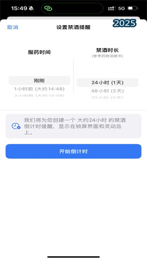 1. 智能藥物計時系統:體醒App內置藥物數據庫,包含各類藥物的藥代動力學參數和酒精相互作用數據。用戶輸入藥物類型和服用時間后,系統通過半衰期計算算法自動生成精準的安全禁酒時長,并在倒計時界面實時顯示剩余時間。應用支持多藥物同時監測,能夠智能處理藥物相互作用情況,提供最保守的安全建議。