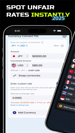 2. 智能匯率公平性檢測引擎有效保障用戶交易權益。用戶只需輸入銀行、兌換點或機場柜臺提供的匯率,系統即可通過基準匯率對比模型進行毫秒級分析,生成包含公平指數評分、溢價百分比和建議兌換渠道的詳細報告。該引擎內置全球匯率數據庫,能夠識別各類隱藏手續費和匯率陷阱,幫助用戶節省最高達15%的兌換成本,成為出境旅行的必備金融衛士。