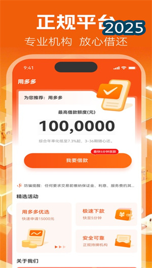 用多多APP是一款專業的在線信貸科技服務平臺,通過智能風控系統和數字化流程管理,為用戶提供便捷、透明的借貸服務。該平臺采用全線上操作模式和自動化審批引擎,實現從申請到放款的全程數字化服務。系統核心包括利率計算模型、額度評估算法和貸后管理模塊,嚴格遵循合規經營準則和風險定價原則。用多多APP目前與多家持牌金融機構合作,累計服務用戶超過百萬,放款總額達數十億元,成為廣大用戶信賴的信貸服務平臺。