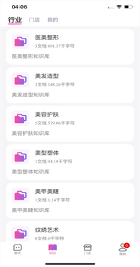 3、知識庫賦能從業者:應用內置美容美業知識庫,提供豐富的行業信息與學習資料,幫助美容師與經營者快速提升專業水平,建立更強的競爭優勢。
