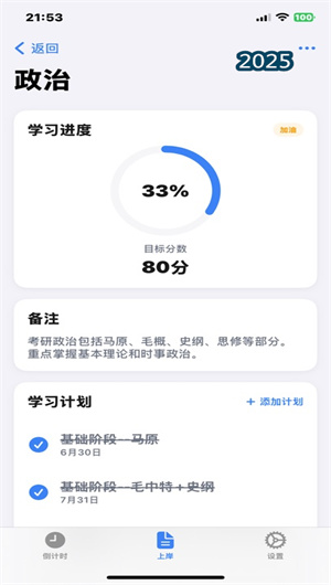 考研倒計時App是一款專為研究生考生打造的智能備考輔助工具,集精準時間管理、科學學習規劃和進度追蹤于一體。本應用采用先進的倒計時算法和多目標管理系統,為考生提供全方位的備考支持。通過智能排課引擎和可視化進度跟蹤,幫助用戶高效規劃復習時間,優化學習效率,實現科學備考。應用完全免費且無廣告干擾,專注于為考研學子創造純凈的學習環境,是每位考研人不可或缺的數字化備考助手。