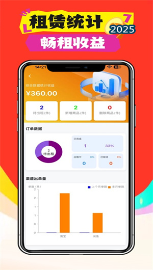 系統(tǒng)提供多維度數(shù)據(jù)可視化工具,包括訂單狀態(tài)餅圖、渠道出單量對比柱狀圖及資產(chǎn)利用率曲線。用戶可自定義統(tǒng)計粒度篩選(按日/周/月)、收益分布雷達圖及庫存周轉(zhuǎn)率圖表,并支持一鍵導出租賃分析報告,助力數(shù)據(jù)驅(qū)動決策。