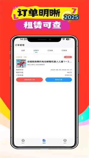 訂單管理模塊涵蓋租賃生命周期全視圖,支持從待出租狀態(tài)到訂單已完成的完整流程跟蹤。系統(tǒng)內(nèi)置租期智能算法,自動計算租賃天數(shù)、超時費用及折扣策略,同時關(guān)聯(lián)合同模板引擎生成電子協(xié)議。用戶可實時查看訂單收益看板,結(jié)合履約提醒推送和違約金計算規(guī)則,確保每一筆交易可控、可溯、可審計。