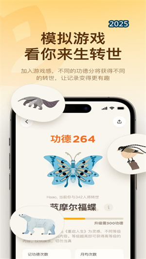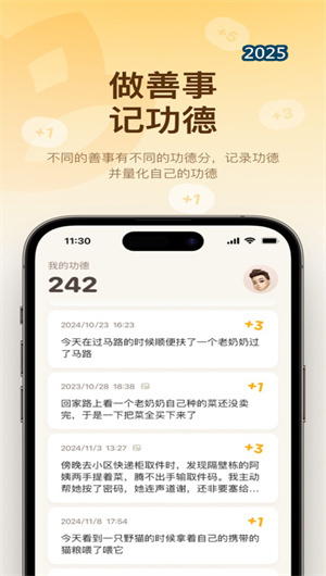 注:本產品說明中涉及的功德值和轉世系統為應用內游戲化設計,旨在鼓勵善行記錄和正能量傳播,不代表任何宗教觀點或真實因果承諾。功德點點App致力于通過有趣的方式促進社會善意傳播,用戶應以現實中的善行價值為重。應用內功德幣為虛擬獎勵,不可兌換為法定貨幣,具體獎勵內容以平臺公告為準。