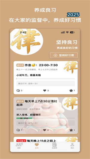 戒律院App是一款基于社群陪伴式習慣養成理念的專業自律工具,通過雙模式打卡系統和社群監督機制,幫助用戶有效戒除壞習慣并培養良好習慣。該平臺采用行為心理學模型和習慣養成科學算法,構建了任務管理引擎、進度可視化分析和實時反饋系統等核心功能。戒律院App創新性地將社群激勵與個人自律相結合,通過主題小組聚合、打卡互動機制和成就體系設計,為用戶提供溫暖而有效的陪伴式改變體驗。目前平臺已幫助超過百萬用戶實現習慣養成,平均堅持成功率提升至65%,成為習慣養成領域的領先應用。