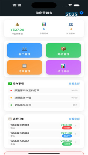 1. 預測性庫存管理系統基于時間序列分析算法和季節性波動模型,通過智能補貨計算器提供科學的庫存管理建議。系統整合銷售速度預測和供應商交貨周期數據,自動計算安全庫存閾值并生成采購建議訂單,同時支持庫存周轉率分析和滯銷商品預警,有效避免斷貨和積壓現象。特別開發的臨期商品提醒功能可提前30天提示即將過期的商品,幫助微商及時處理減少損失。