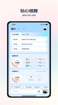 3.智能管家一體化:懂伴不僅是健康助手,還兼具生活小幫手的角色。通過記賬、提醒和飲食監控等模塊,幫助用戶全面管理生活,成為貼心的全能智能管家。