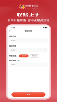 2.智能操作界面:收啦上門 APP 提供高度優(yōu)化的操作體驗,支持一鍵響應訂單、自動計量稱重以及標準化服務流程。回收員在整個作業(yè)過程中能夠?qū)崿F(xiàn)全流程數(shù)字化操作,避免傳統(tǒng)模式下的手工誤差,提高服務規(guī)范性。