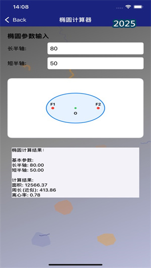 應用提供專業的橢圓計算功能。用戶只需輸入長軸與短軸的長度參數,強大的計算引擎便會自動推導出所有核心屬性,包括兩個焦點位置、離心率、周長近似值等關鍵數據。繪制時,應用采用智能縮放顯示技術,確保整個橢圓圖形,包括其中心點和焦點,都能完整且清晰地呈現在視圖中,并支持焦點標注與中心點標識,極大便利了對橢圓幾何特性的研究與教學演示。