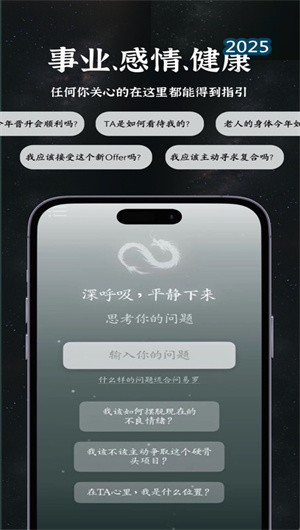 我們堅信智慧指引應人人可及,因此打造了零基礎導向的全程引導式體驗。應用內徹底簡化了所有復雜的交互流程,從進入APP的那一刻起,用戶就會被AI助手溫柔地引導,逐步完成問題定義、起卦流程、神諭牌抽取和報告閱讀的全過程。這種易于上手的設計確保了每一位用戶,無論其知識背景如何,都能在幾分鐘內完成一次高質量的占卜,成為自己的心靈伙伴。
