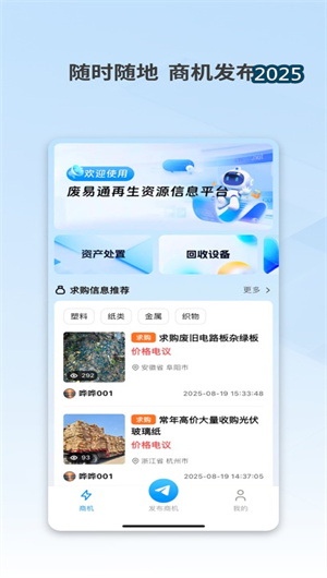 在循環經濟與綠色發展戰略全面推進的時代背景下,廢易通APP作為再生資源行業專屬的一站式信息、商機與產業服務平臺,通過數字化技術與物聯網基礎設施重構傳統再生資源產業生態。本平臺基于云端協同架構與大數據分析引擎,集成供需智能匹配、行情實時監測、智能回收設備管理與全鏈條解決方案等核心模塊,構建連接回收商、采購方與終端用戶的產業互聯網生態。采用微服務設計與多租戶SaaS模式,廢易通支持回收商與采購方一鍵發布供需信息,通過智能算法實現精準商機匹配與資源優化配置。平臺整合智能回收車物聯網數據、回收機運營狀態與回收秤稱重信息,配套再生資源回收站標準化建設與分揀中心智能化改造方案,為行業提供從回收到利用的全鏈條省心服務,顯著提升產業運營效率與資源循環利用率。