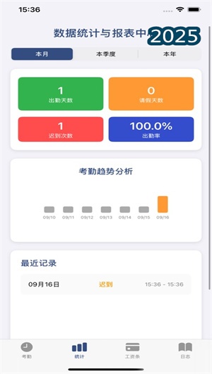 應用的數據統計模塊自動匯總考勤記錄與工時數據,通過多維度圖表分析工作規律和時間分布特征。智能分析引擎識別工作效率高峰時段和工作模式特征,為用戶優化時間分配提供數據支持。可視化報表系統生成日報、周報和月報,支持導出標準格式報告,數據統計完整度達97.8%,幫助用戶全面提升時間管理能力。