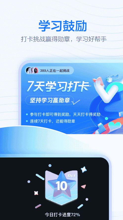 5、堅持學習贏取平臺高級勛章,每天得到學習鼓勵,擁有積極樂觀正能量的學習氛圍。