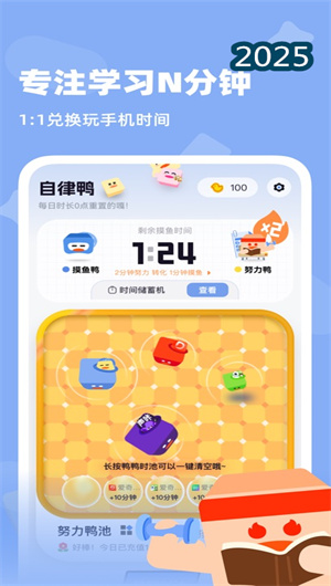 自律鴨鴨App通過創新的時間兌換理念和人性化的功能設計,成功打破了傳統時間管理應用的刻板框架,讓自律變得更有趣,讓休息變得更理直氣壯。從學生黨到打工人,從專注學習到合理娛樂,自律鴨鴨始終致力于幫助用戶找到最適合自己的節奏,在努力與擺爛之間建立健康的動態平衡。選擇自律鴨鴨,就是選擇了一種全新的生活方式——既不需要過度內卷,也不至于徹底躺平,而是在每一個當下都能問心無愧地說:"我值得這段美好時光!"