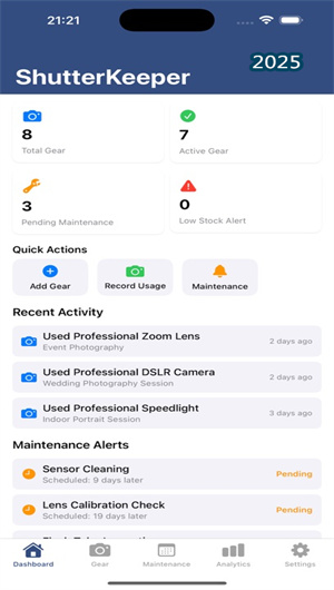 快門守護者通過專業的器材管理、智能的維護提醒與完善的數據分析,重新定義了攝影器材管理的數字化標準。其離線的隱私保護、可視化的數據展示與靈活的團隊協作,為攝影專業人士提供了安全、高效、可靠的管理體驗。選擇快門守護者,讓每一次按下快門都更有保障!