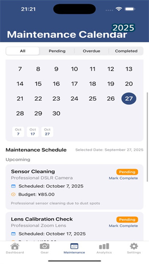 應用采用先進的使用數據分析技術,通過快門計數統計、使用頻率分析與故障模式識別,生成具有可操作性的決策建議。智能的設備健康評分綜合多項指標評估器材狀態,而生命周期預測則預估設備的剩余使用壽命。創新的成本效益分析量化每臺設備的使用價值,這種數據驅動決策特色幫助用戶做出更明智的設備投資與維護決策。