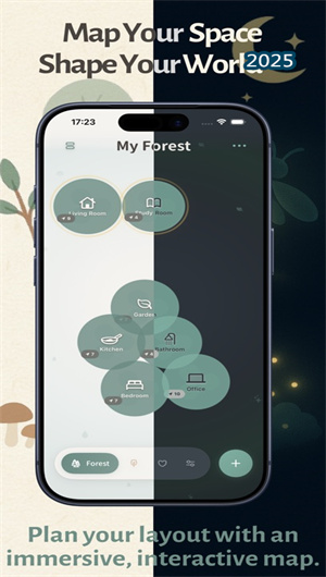 物之森的核心功能是其創新的沉浸式森林地圖。該功能將用戶真實的物理空間,如房間、書架、衣柜,通過空間編碼技術,轉化為一棵棵獨具特色的“空間之樹”。這些樹木共同構成了一幅專屬于用戶的、全景式的森林景觀。用戶可以通過這張高度直觀可視化的交互地圖,快速定位任何物品的精確位置,物品的數字化身會如同果實或小動物般棲息在對應的“樹”上。這種空間映射方式徹底改變了傳統列表管理的枯燥模式,使物品定位過程變得如同在森林中漫步一般直觀而有趣。