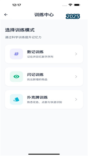 記憶貝貝的訓(xùn)練中心提供了一系列科學(xué)設(shè)計的記憶訓(xùn)練項目,包括記憶撲克牌、記憶數(shù)字、詞匯記憶等多樣化訓(xùn)練內(nèi)容。每個訓(xùn)練項目都設(shè)有清晰的難度梯度,從基礎(chǔ)到進階,適合不同水平的用戶。系統(tǒng)會記錄用戶的訓(xùn)練數(shù)據(jù),生成詳細的能力評估報告,并通過智能推薦算法為用戶推送最適合當前水平的訓(xùn)練內(nèi)容,確保訓(xùn)練效果的最大化,幫助用戶穩(wěn)步提升記憶能力。