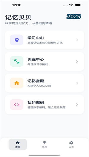 在信息爆炸的時代,高效記憶能力已成為個人學(xué)習(xí)和發(fā)展的核心競爭力。記憶貝貝APP應(yīng)運而生,它是一款基于認知科學(xué)原理設(shè)計的記憶訓(xùn)練工具,旨在通過系統(tǒng)化的記憶方法訓(xùn)練,幫助用戶將記憶力轉(zhuǎn)化為"超能力"。記憶貝貝深度融合了記憶宮殿、數(shù)字編碼等經(jīng)典記憶術(shù),構(gòu)建了一個從基礎(chǔ)訓(xùn)練到實戰(zhàn)應(yīng)用的完整記憶生態(tài)系統(tǒng)。其核心使命是打破"死記硬背"的傳統(tǒng)模式,通過科學(xué)方法、趣味化設(shè)計和個性化定制,讓記憶訓(xùn)練變得輕松有趣,最終幫助用戶在工作、學(xué)習(xí)和生活中養(yǎng)成"超強記憶力"的習(xí)慣。