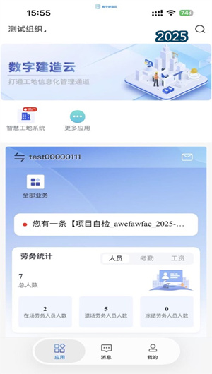 2. 物聯網數據驅動的勞務數字化管理:本App實現了對勞務人員的數字化與精細化管理,構成其另一大特色。通過與現場物聯網設備(如閘機、人臉識別考勤機)的數據對接,可快速完成或自動同步工人信息錄入。系統基于這些實時數據,自動生成精準的考勤統計與工時報表,不僅大大減輕了勞務員的工作負擔,還為工資發放、用工分析提供了不可篡改的數據依據,實現了勞務管理的高效合規,將勞務糾紛發生率降低了35%。