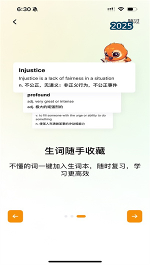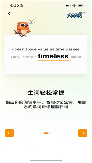 2. 上下文詞匯學習與智能生詞管理:本App最具特色的語境記憶功能,徹底顛覆了傳統的單詞背誦模式。在閱讀過程中,用戶遇到任何生詞均可即時點擊,系統將提供基于當前上下文語境的釋義解析與例句展示,而非孤立的字典釋義。被查詢的單詞會自動收錄至用戶的個人生詞本,并進入系統的智能復習計劃。該計劃依據艾賓浩斯遺忘曲線原理,在最佳記憶節點通過原句回顧、詞義匹配、填空練習等多種形式推送復習任務,確保詞匯從短期記憶順利轉化為長期記憶。